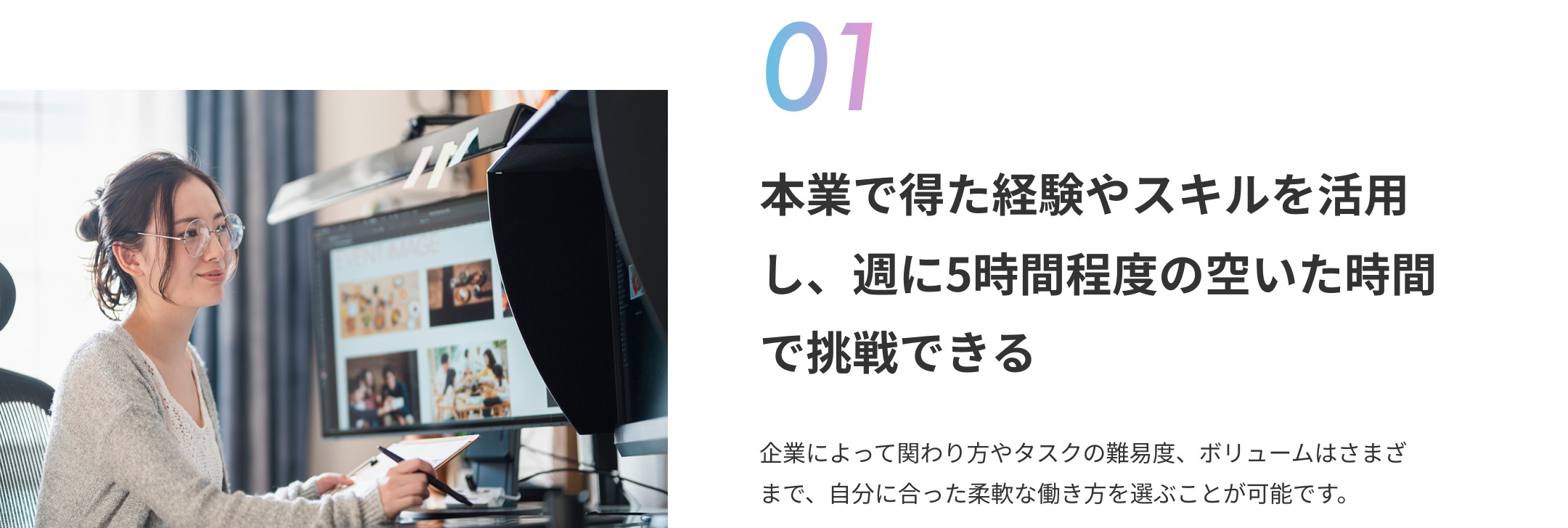 A: 案件によって異なりますが、週5時間程度から可能な案件があります。